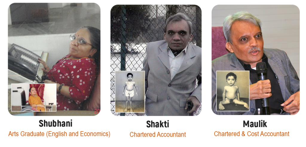 Shubhani, Shakti and Maulik all the three are physically challenged. In medical terms it is called Arthrogryposis Multiplex Congenita (AMC)